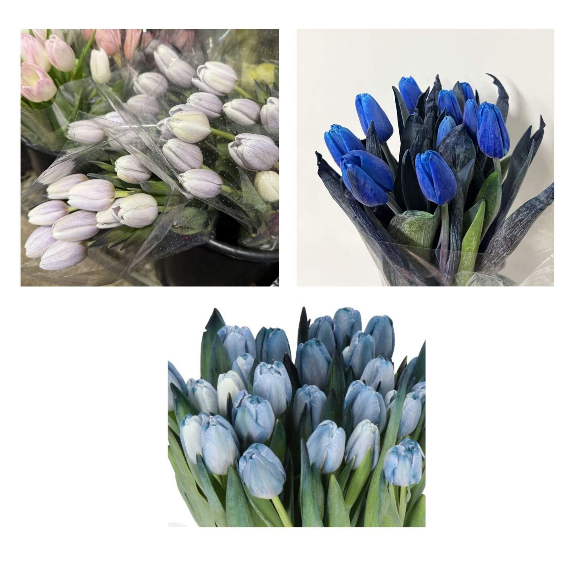Wholesale Blue Tinted Double Tulips offer a stunning, unique twist with their tinted blue hue and lush, layered petals. Each stem features vibrant double blooms. Sold in bunches of 10 stems, these tulips are perfect for adding elegance and charm to bouquets, centerpieces, and creative floral arrangements. Their distinctive look makes them a versatile choice for both casual and formal designs. Please note that the specific shade of blue will vary since these are dyed. If you have a specific shade preference, please be sure to indicate so in your order comments.
