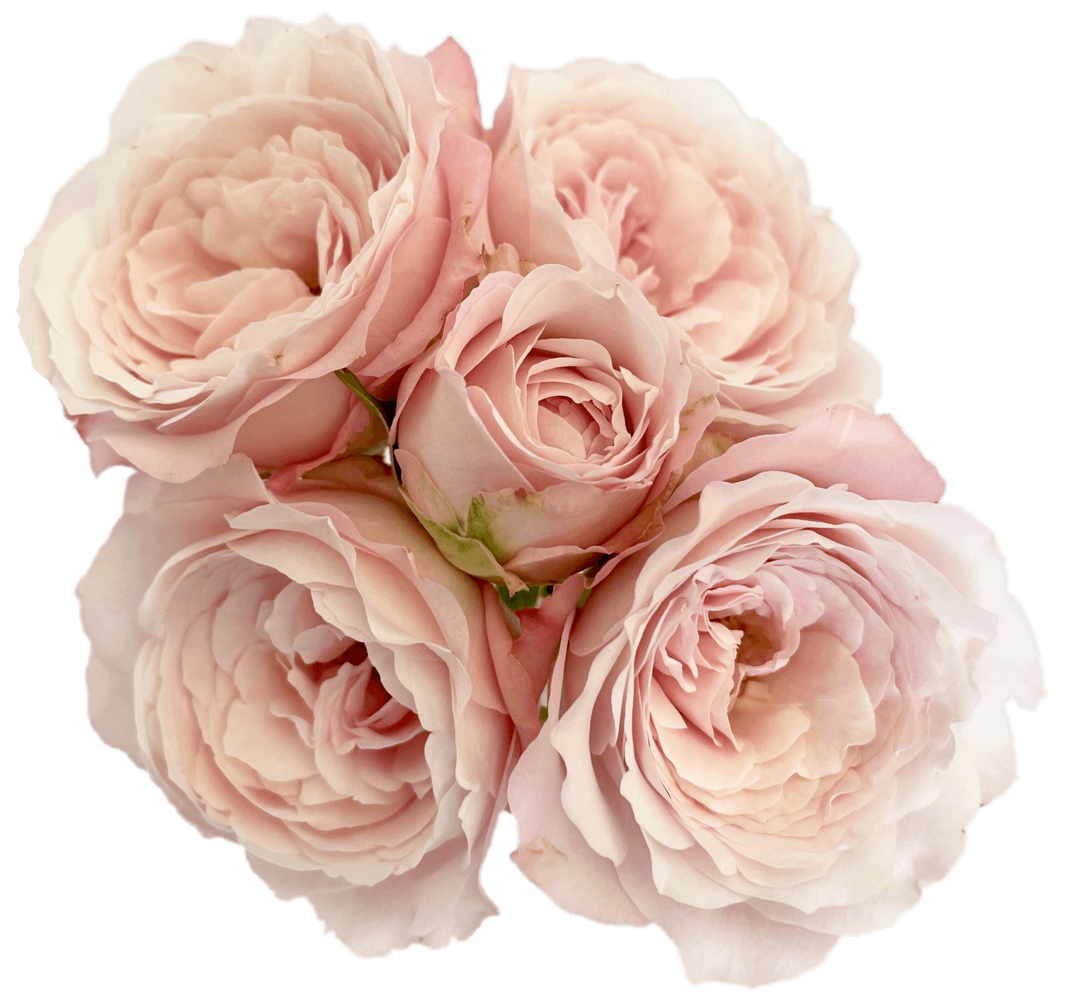 Bulk Princess Fairy Kiss spray roses sold in 24 and 48 stem boxes. Soft pink clusters arrive tight. They open into multiple blooms per stem for added texture in DIY arrangements.