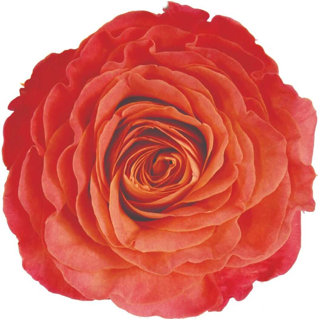 Bulk Sunset garden roses sold in 48 and 96 stem boxes. Orange peach blooms arrive compact. They open into a vibrant layered flower for DIY weddings.