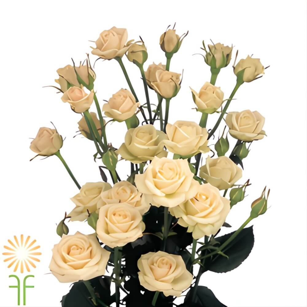 Wholesale Cream Jana Spray Roses are a versatile and elegant choice for floral arrangements. Locally grown, these spray roses feature creamy blooms with 5 or more flowers per stem. Sold in 8-10 stem bunches with stems measuring 20-25 inches, Cream Jana Spray Roses are perfect for wedding bouquets, centerpieces, and romantic floral designs. Available year-round, they bring timeless beauty to every creation.