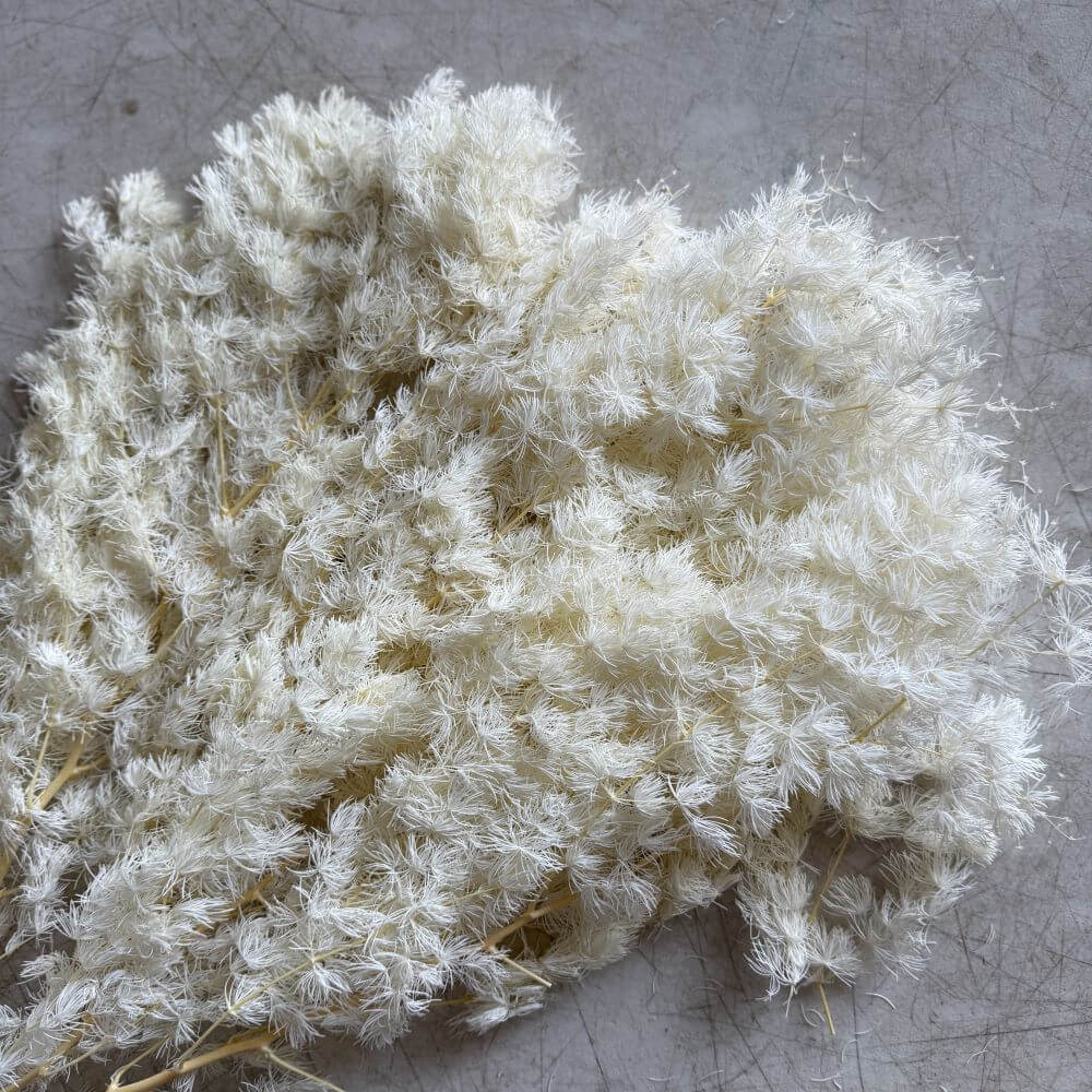 Wholesale Dried Bleached Ming Fern adds elegance and texture to floral arrangements with its soft, bleached tones and delicate foliage. Stems are approximately 24″ tall and these are sold in bunches of 3-5 stems. Perfect for fresh and dried designs, this versatile foliage is available year-round while supplies last.