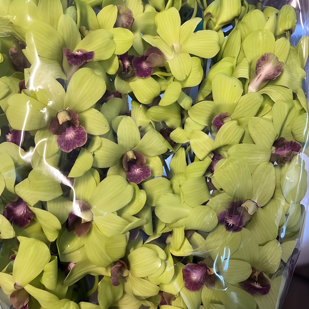 Wholesale Green Dendrobium Orchids bring elegance and sophistication to floral designs. These vibrant green orchids, with stems measuring approximately 22-24 inches tall, feature multiple blooms per stem and are sold in bunches of 10 stems. Available year-round, they are ideal for modern, tropical, or event arrangements. Please note they are available for delivery on Wednesday, Thursday, Friday, or Saturday, and require at least a one-week preorder.