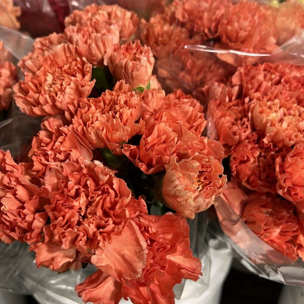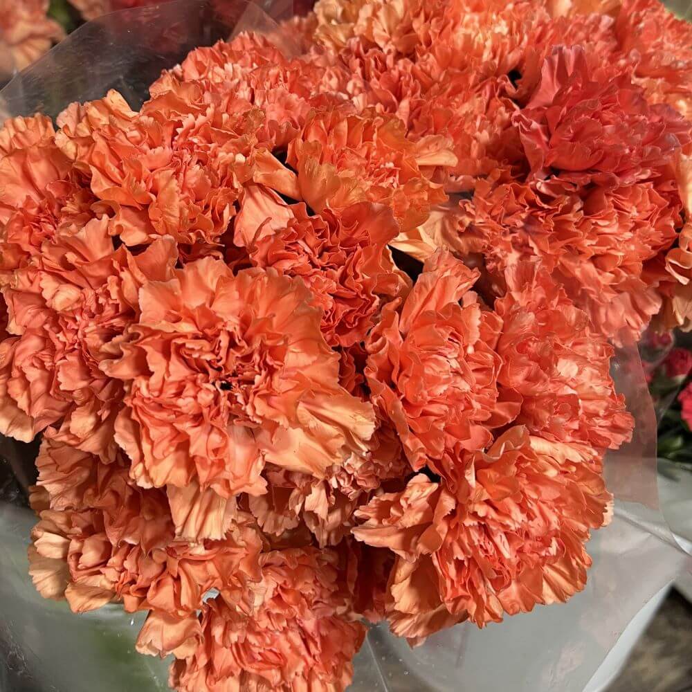 Wholesale Orange Carnations are vibrant standard blooms, available year-round and known for their long-lasting vase life. These natural orange carnations have no fragrance, making them an ideal choice for a wide range of floral arrangements. Sold in 25-stem bunches with tall, sturdy stems, Orange Carnations are perfect for bouquets, centerpieces, and event designs. For optimal availability, please order at least 10 days in advance.