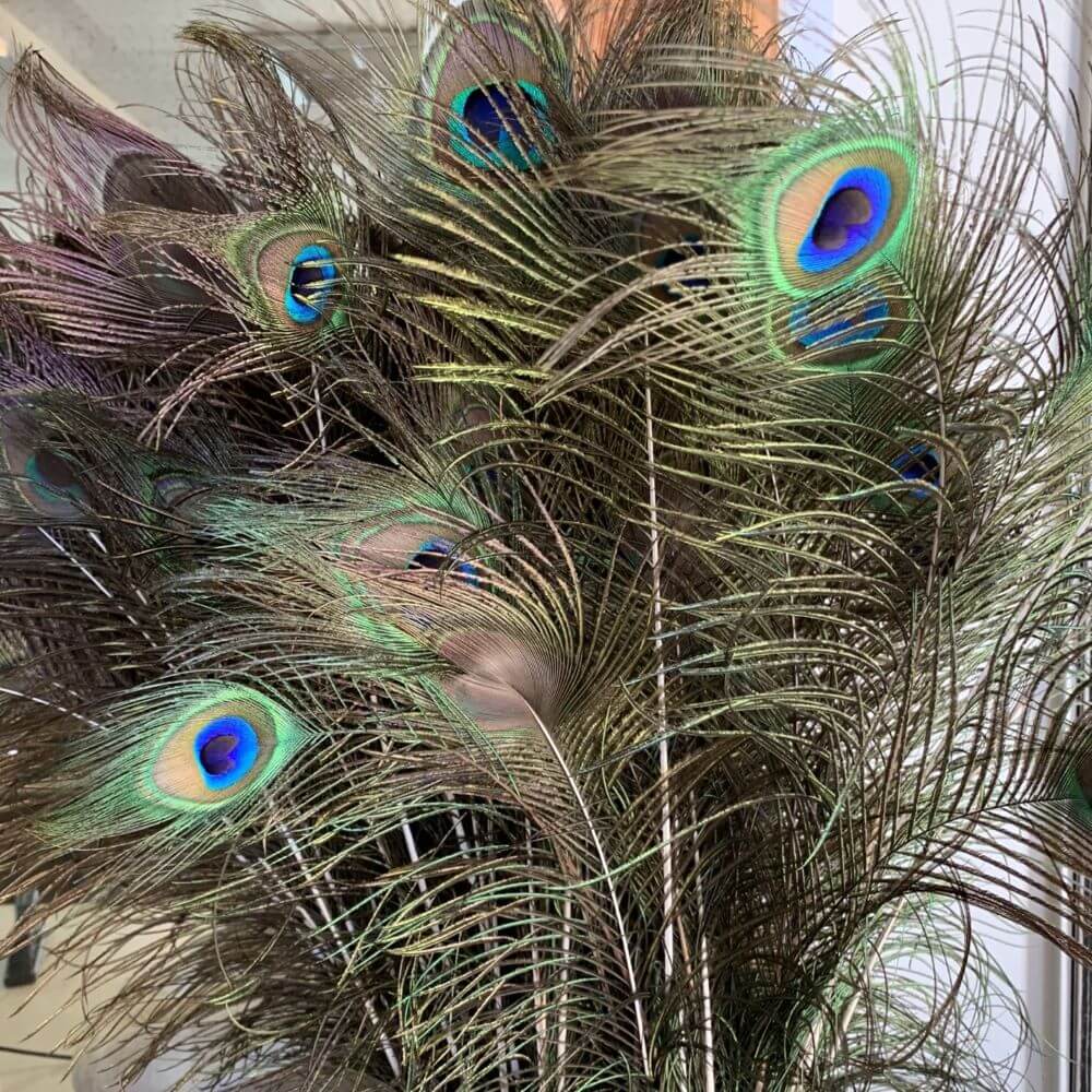 Wholesale Peacock Feathers are a stunning addition to any floral or event arrangement, providing an exotic, luxurious touch with their iridescent, multi-colored hues. These real feathers measure approximately 30-35 inches long and are perfect for creating dramatic centerpieces or accenting bouquets. Sold in sets of 5 stems, they are available year-round. Please place your order 3-5 business days in advance to ensure availability.