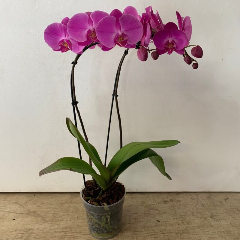 Wholesale Phalaenopsis Orchids bring elegance and sophistication to any setting. Each plant is beautifully displayed in a 5-inch pot and features a two graceful bloom spikes. Available in classic white, vibrant magenta purple, or assorted colors, these California-grown orchids are perfect for lobbies, restaurants, office desks, or as eye-catching centerpieces. Available year-round, they make a stunning addition to any space.