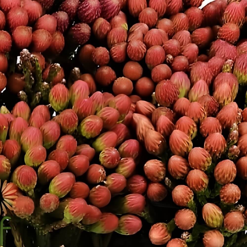 Wholesale Red Brunia is a versatile and unique flower that adds texture and interest to various floral arrangements. Its spherical, red blooms make it a popular choice for weddings, bouquets, boutonnieres, and centerpieces. The neutral tones of Red Brunia allow it to complement a wide range of other flowers, making it a staple in many floral designs. Each grower’s bunch contains 5 stems, with a stem length of 18-22 inches.
