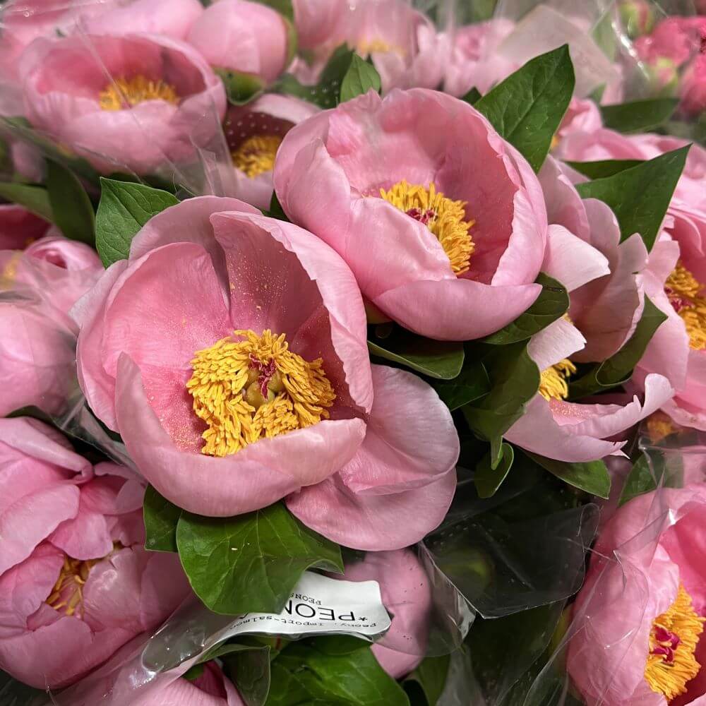 Wholesale Salmon Saucer Peony is a single-petaled peony known for its striking blooms. Depending on the season, we offer both American-grown peonies (including those from Alaska) and imported peonies from Chile, New Zealand, Holland, and Israel. Always in demand, prices may vary throughout the year. Each bunch contains 5 stems, with a stem length of approximately 12-18 inches.