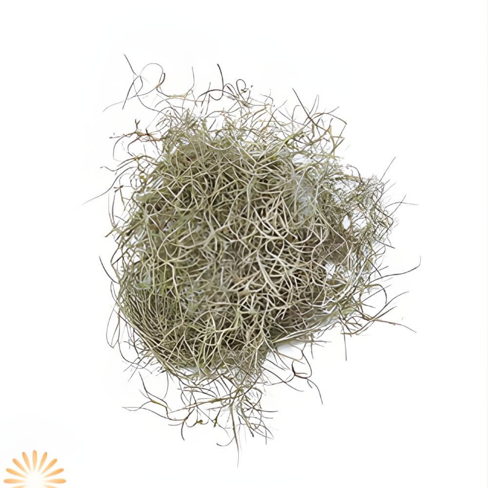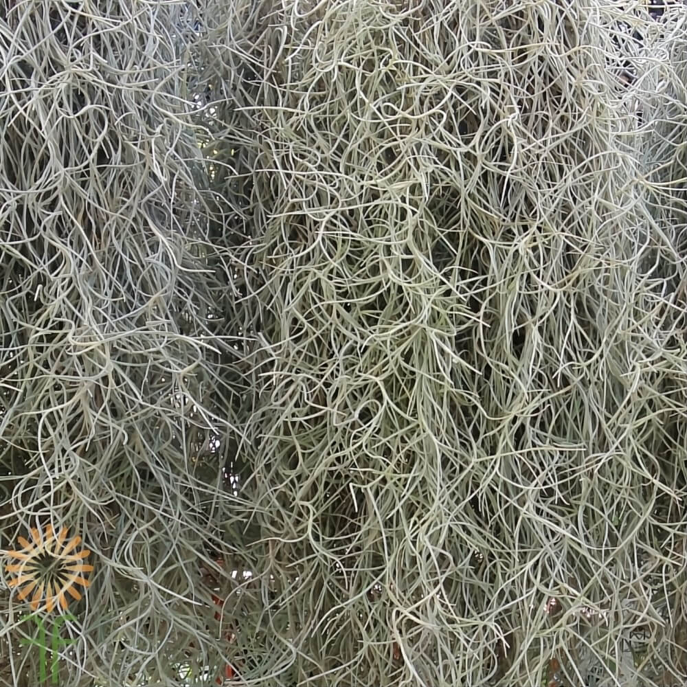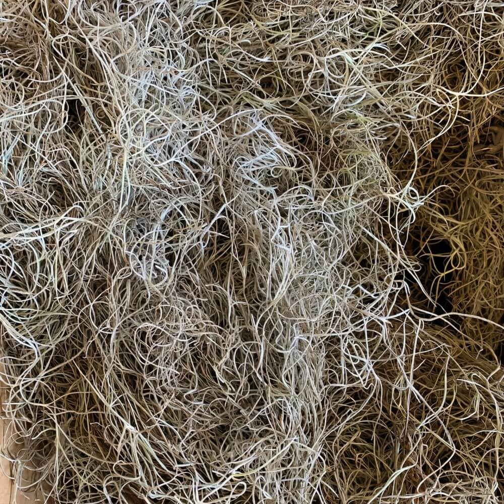 - Natural, curly, threadlike plant in grey-green tones.