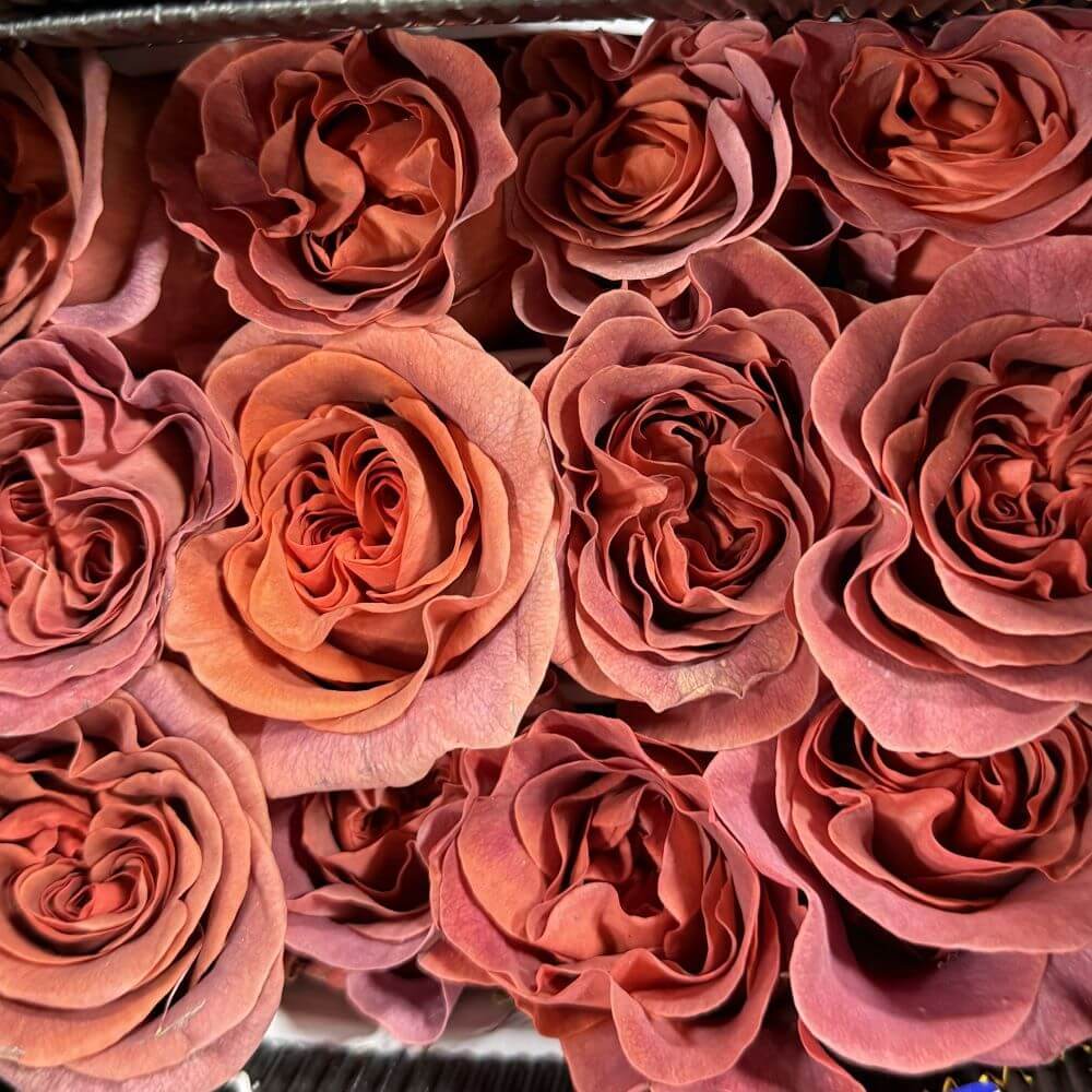 Wholesale Brown/Terracotta Razzmatazz Roses bring an elegant rusty brown hue to floral designs. With large blooms and a vase life that ensures longevity, these roses are perfect for autumn-inspired arrangements, rustic weddings, or modern centerpieces. Standing at 19.75 inches (50 cm) tall and packed in 25-stem bunches, they add sophistication and warmth to any bouquet or floral décor.
