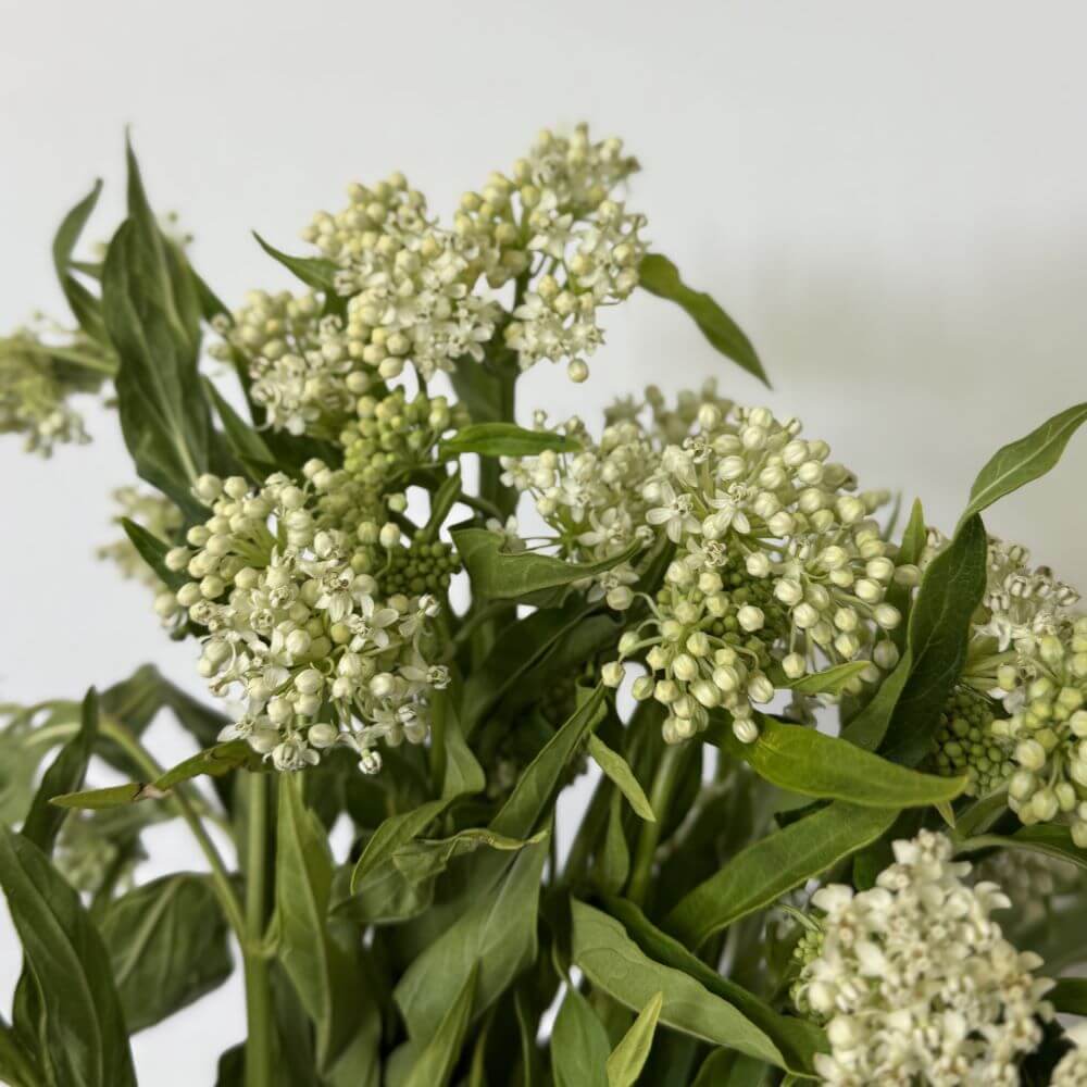 Wholesale White Asclepia (also known as Butterflyweed) is a long-living, showy cut flower. Its small white blooms cluster together to create a larger plume, adding texture and elegance to any arrangement. The sturdy stems stand at approximately 18-24 inches (45-61 cm), making them perfect for both vase arrangements and bouquets. These flowers are sold by the bunch, with typically 10 stems per bunch, and are ideal for creating beautiful, wildflower-inspired designs.