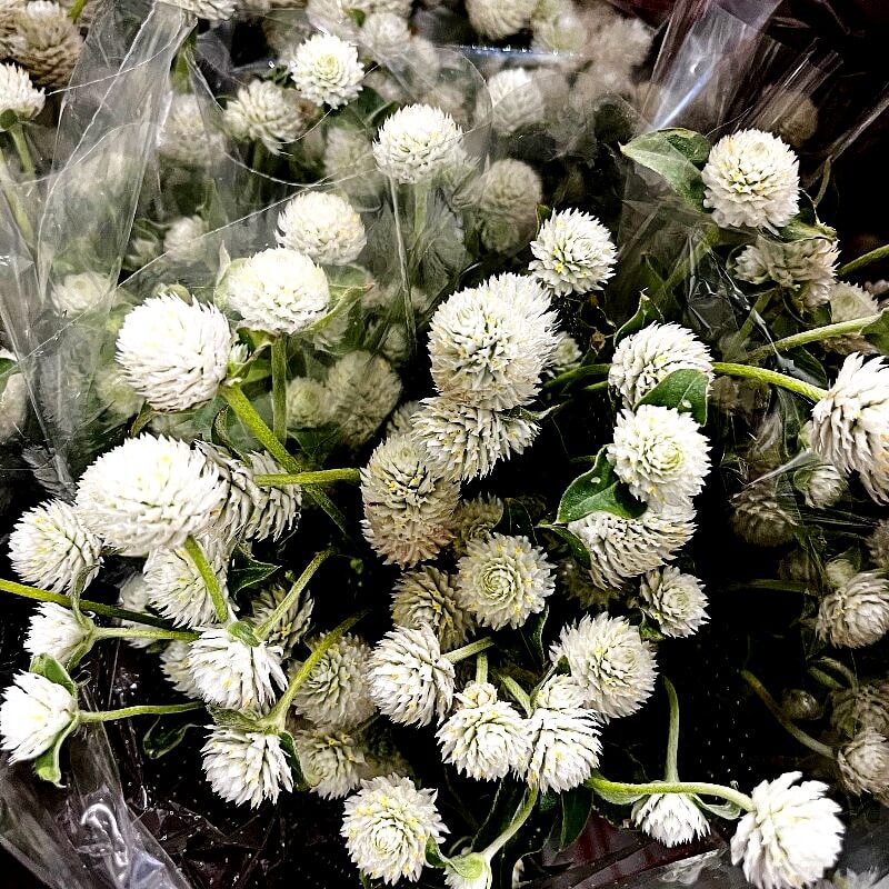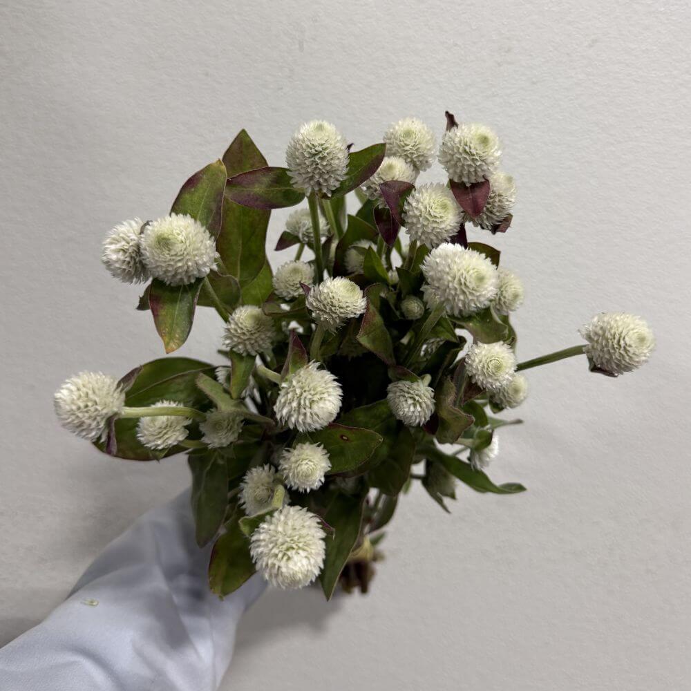 - Bloom Style: White Gomphrena features spherical, papery blooms, adding texture and charm to any arrangement.