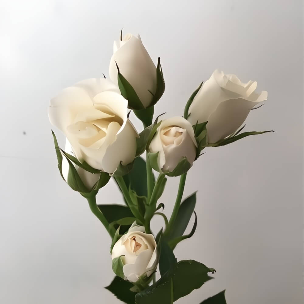 Wholesale White Majolika Spray Roses bring timeless elegance to any arrangement. These blushy white spray roses feature 3-5 small blooms per stem, making them a perfect choice for wedding bouquets, boutonnieres, and centerpieces. With a stem length of approximately 14 inches (35 cm), White Majolika Spray Roses are sold in bunches of 10 stems, offering versatility for any floral design.