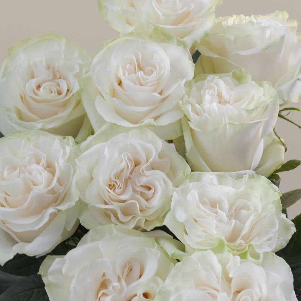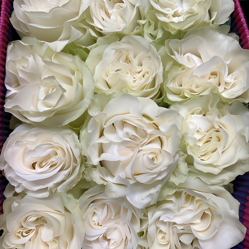 Wholesale White Moonstone Roses feature striking white blooms with green outer petals, giving them a unique and elegant appearance. These roses are known for their beautiful, ruffled petals that open fully, making them ideal for weddings, events, and sophisticated floral designs. Each bunch contains 25 stems with an average stem length of approximately 19.75 inches (50 cm). Their distinct coloring and soft texture make them a versatile choice for creating timeless arrangements.