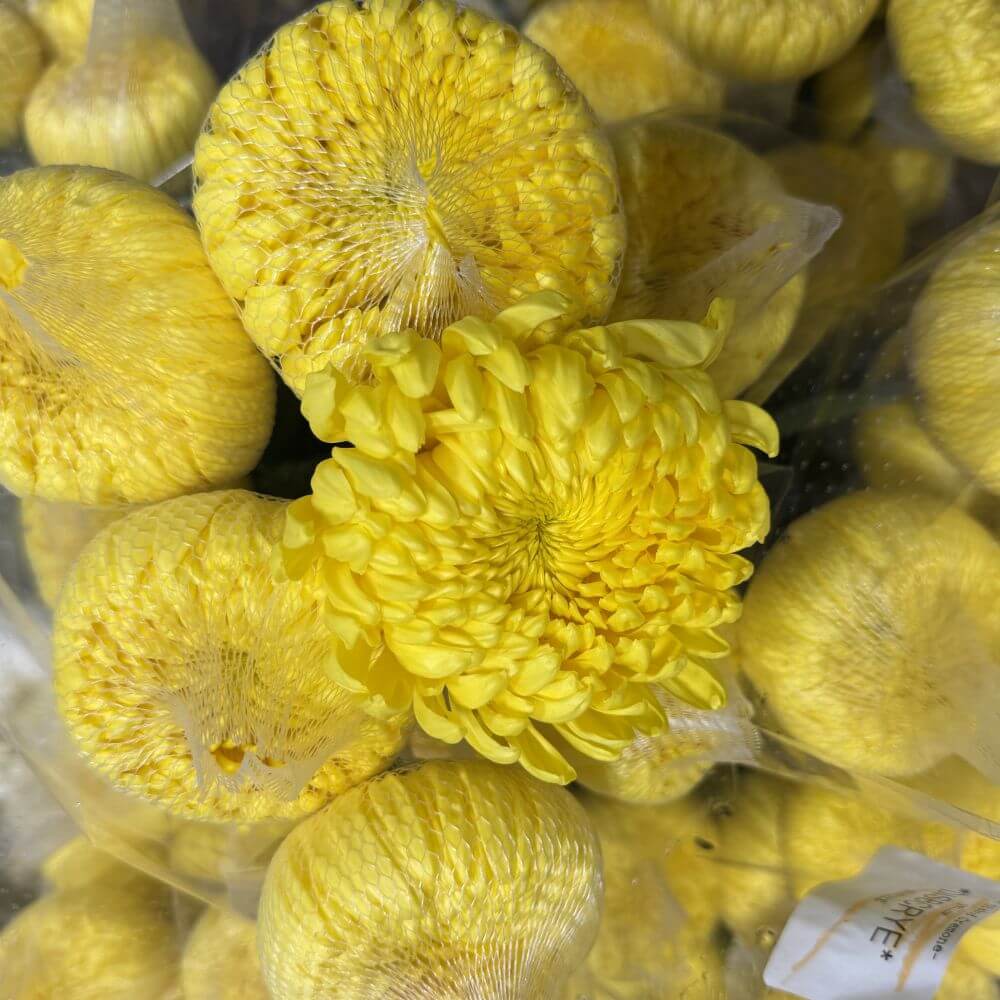 To ensure your Yellow Disbud Cremone Mums stay fresh and vibrant, follow our flower care tips.